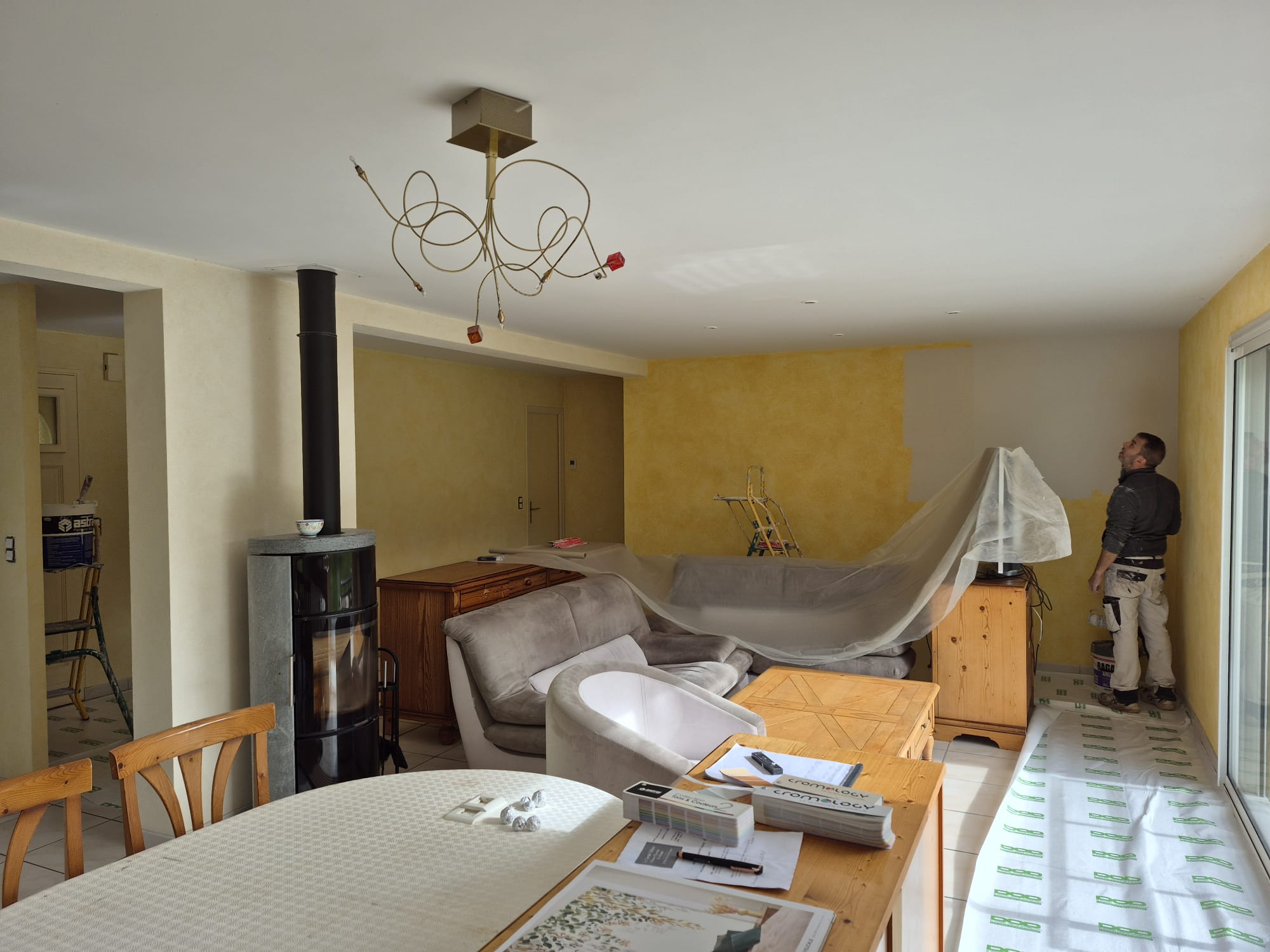 La peinture se joue en duo dans l’entreprise, entre Anthony Le Guenno, artisan-peintre diplômé avec une mention en faux bois, staff et patine décorative et Sandie, également peintre en bâtiment. Pour transformer vos espaces, notre complémentarité et notre bonne humeur font toute la différence.